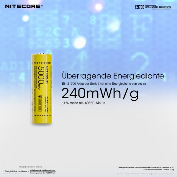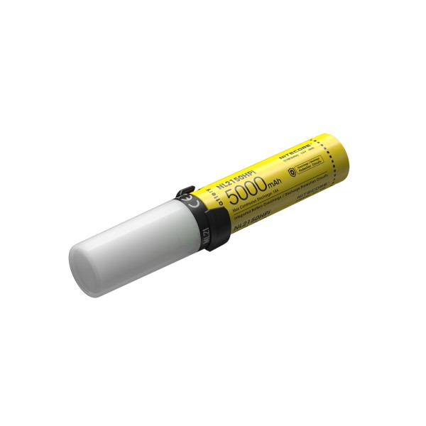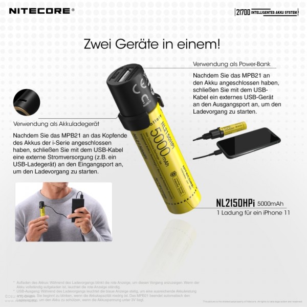 Lieferumgang: Nitecore NL2150HPi-Akku mit 5000mAh, Powerbank-Adapter MPB21 und der Laterne ML21