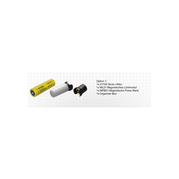Die Bestandteile des Battery Systems sind ein NL2150HPi-Akku mit 5000mAh, die ML21 Magnetlaterne und der MPB21 Magnet-Powerbank-Adapter inkl. Akkuladefunktion.