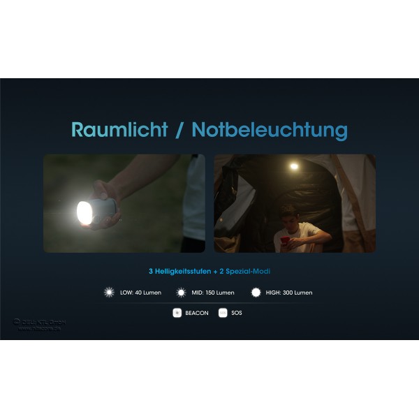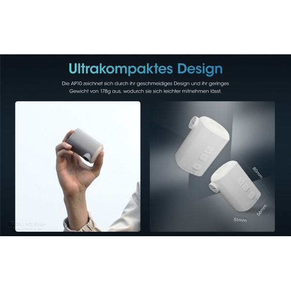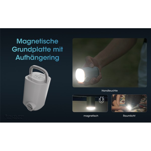 Zusätzlich kann die AP10 auch als Laterne genutzt werden. Es stehe 3 Leuchtstufen zur Verfügung, 300, 150 und 40 Lumen.
