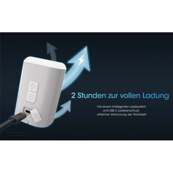Der interne Akku mit 3600mAh Kapazität wird über einen USB-C-Anschluss aufgeladen.