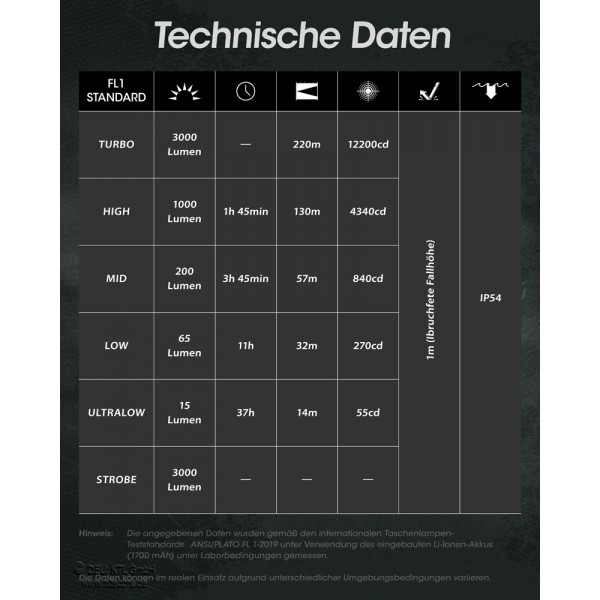 Turbo (3000 Lumen) für ca. 30 Minuten*
