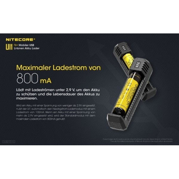 Mit max. Ladestrom von 800mA, Reaktivierung von Tiefentladenen Akkus mit Schutzelektronik, 3 Status LED`s und Schachtlänge von 77mm ist der Nitecore UI1 bestens für die Zukunft ausgestattet.