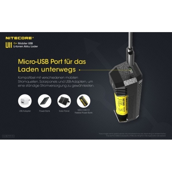 Nitecore UI1, USB Kabel , Bedienungsanleitung in mehreren Sprachen (abgebildete Akkus nicht im Lieferumfang)