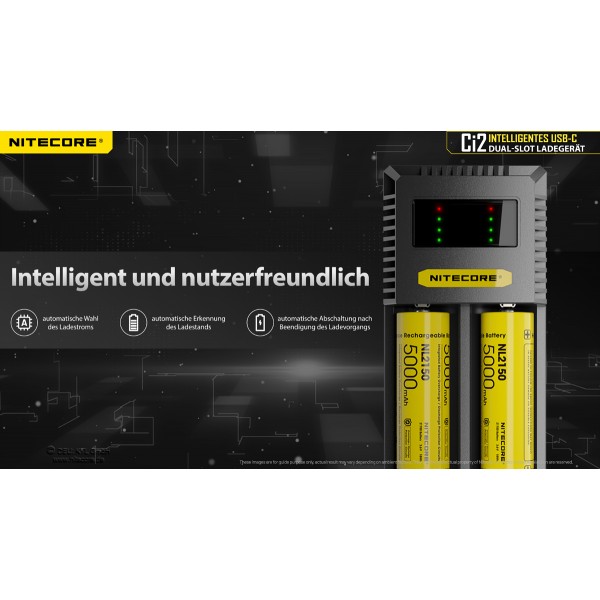Das Nitecore CI2 erkennt automatisch den Ladeszustand, die Kapazität und den Typ des eingelegten Akkus und wählt automatisch das richtige Ladeverfahren und den richtigen Ladestrom.
