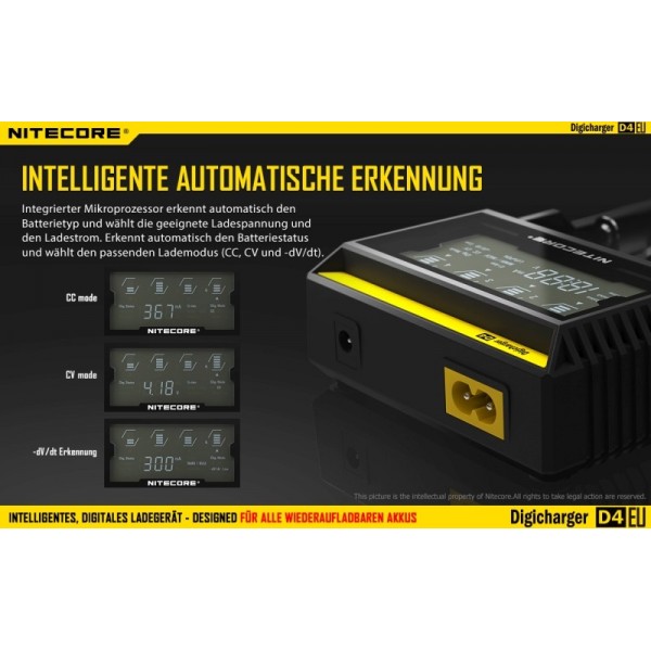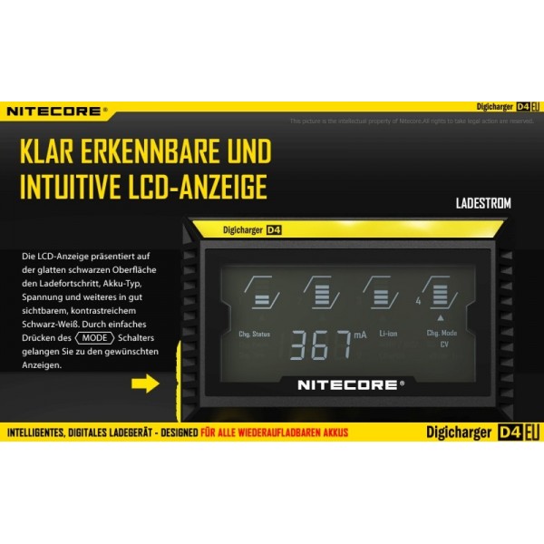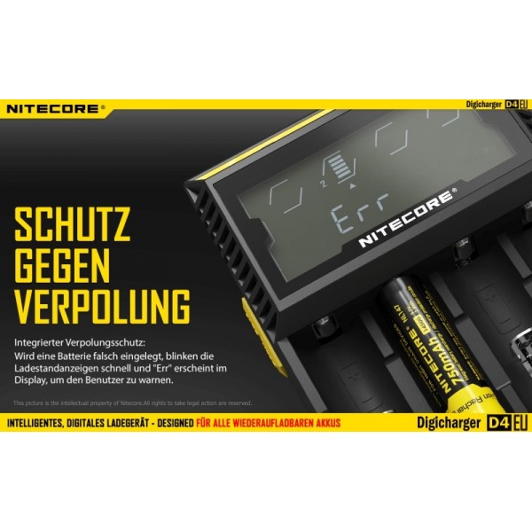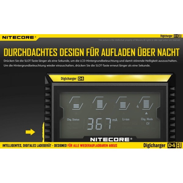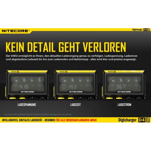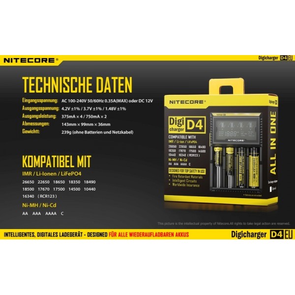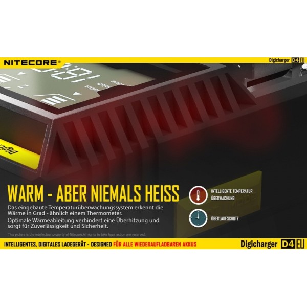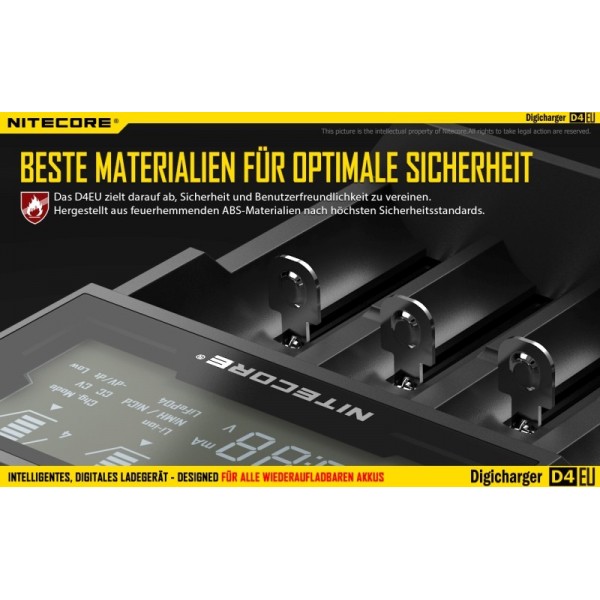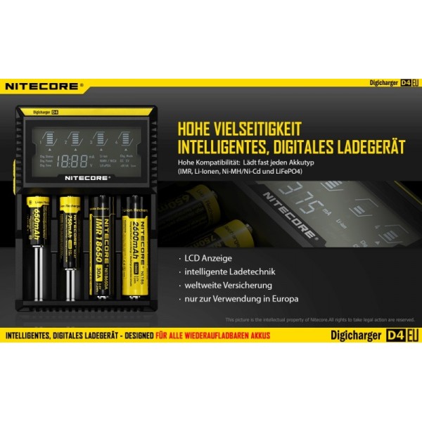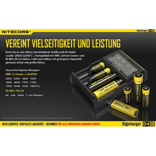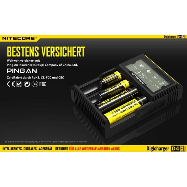 Lieferumfang: NiteCore Digicharger D4EU, 230V Netzkabel