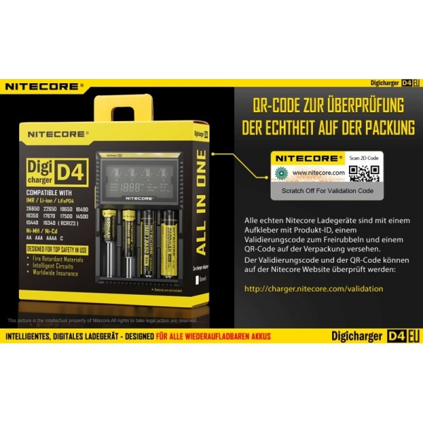 Um die Echtheit Ihres Nitecore Ladegerätes zu überprüfen, kratzen Sie den Code auf dem Sicherheitslabel frei und geben diesen hier ein: