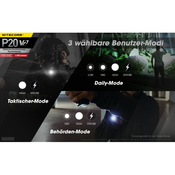 Die P20 V2 verfügt über drei Modi die vom Benutzer gewählt werden können:
