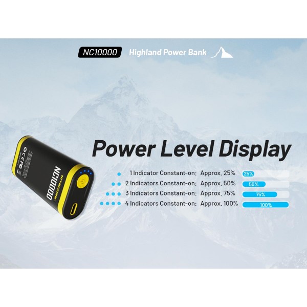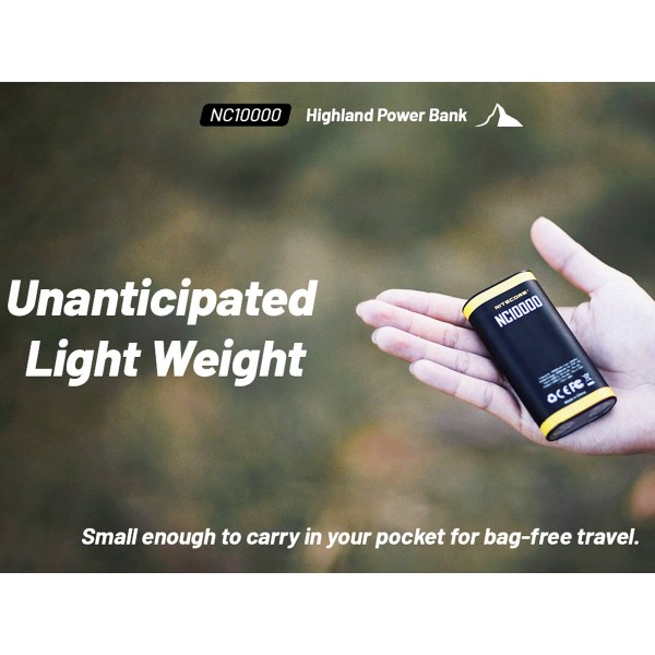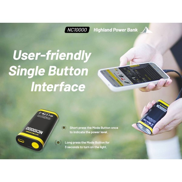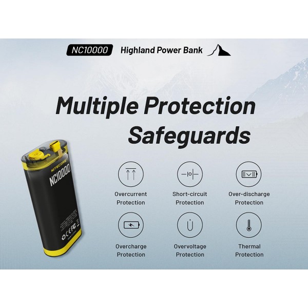 Die kompakte Grösse und das geringe Gewicht macht sie zu einem idealen Begleiter bei allen Outdoor-Aktivitäten. Die Nitecore NC10000 ist IPX5 spritzwassergeschützt. Verschiede Schutzeinrichtungen sorgen für einen sicheren Betrieb der NC10000. Eine Betriebsstandsanzeige informiert über den aktuellen Ladezustand.