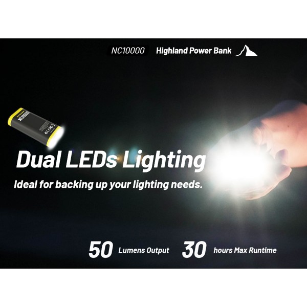 Die Nitecore Powerbank NC10000 is eine kompakte Powerbank mit 10000mAh Kapazität und einer integrierten LED-Leuchte. Die LED-Leuchte leistet 50 Lumen und hat eine maximale Laufzeit von 30 Stunden.