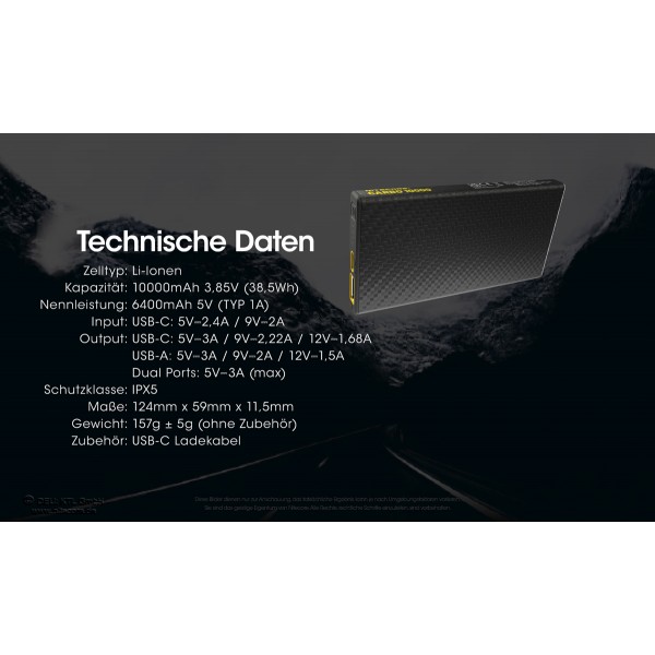 Lieferumfang: Nitecore CARBO10000, USB-C-Ladekabel