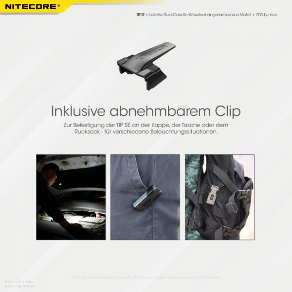 Lieferumfang: Nitecore TIP SE schwarz , Clip, Schlüsselring
