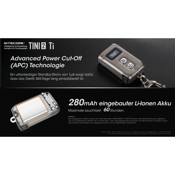 Die Nitecore TINI 2 TITAN verfügt über die gleichen technischen Eigenschaften wie die Aluminium-Version der TINI 2.