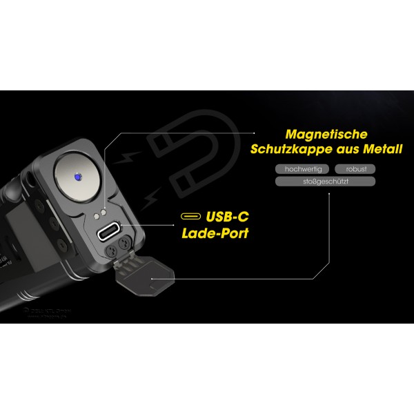 Lieferumfang: Nitecore TM12K, Ladekabel, Holster, Dichtring