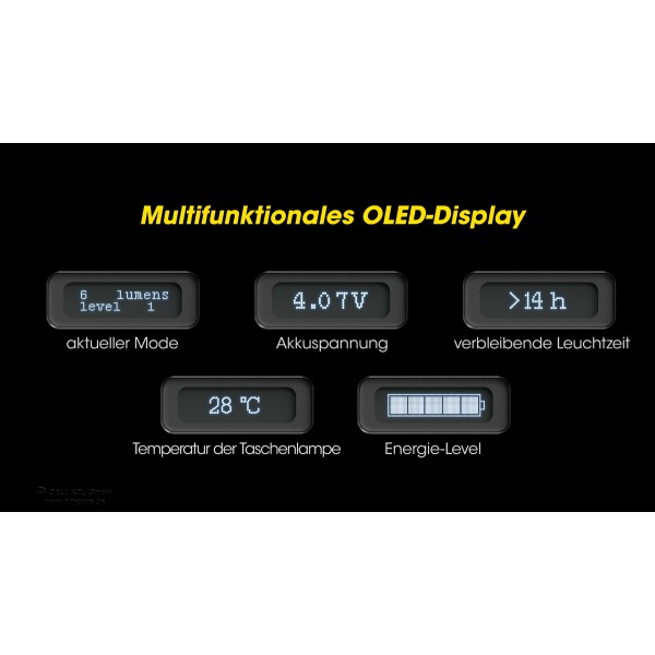 Multifunktionales OLED-Echtzeitdisplay für Lumen, Spannung, Laufzeit und Temperatur